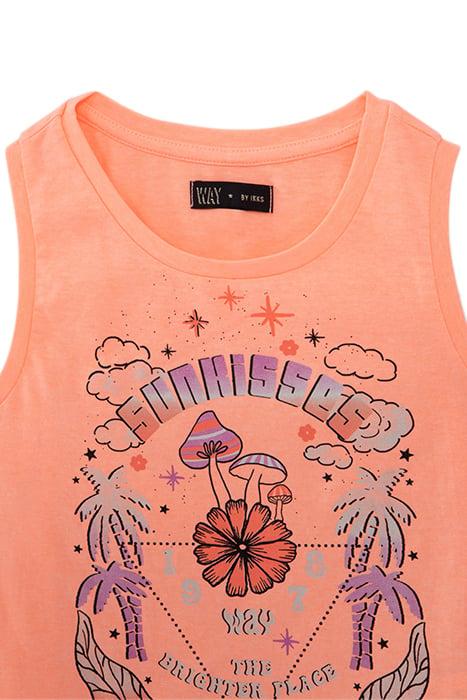 GIRLS’ NEON ORANGE VEST TOP, MUSHROOMS & PALM TREES IMAGES