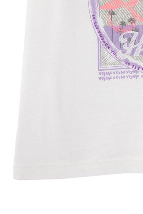 GIRLS’ OFF-WHITE T-SHIRT, PALM TREES AND RUFFLED SLEEVES