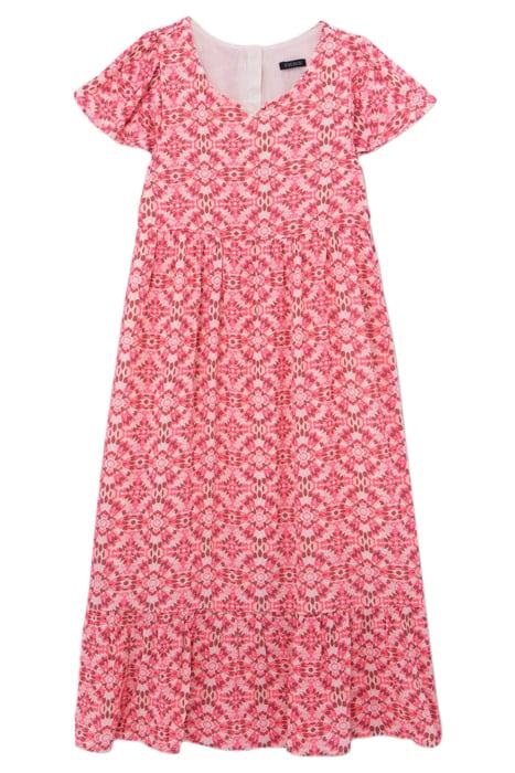 GIRLS’ PINK LONG DRESS WITH ETHNIC PRINT