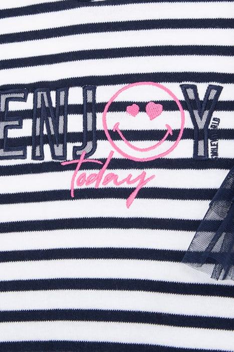 The Smileyworld Is The Universal Symbol Of Happiness, Positivity And Friendliness, And It Takes The Place Of The Letter O In The Word Enjoy, Embroidered On This Girls’ Sailor-Stripe Dress. The Tulle Sleeves Twist The Knit With A Decorative Touch.