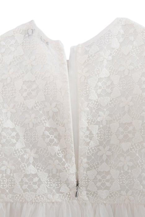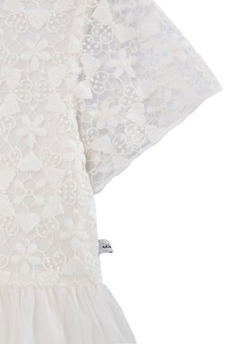 GIRLS’ WHITE MIXED-FABRIC DRESS WITH LACE AND TULLE