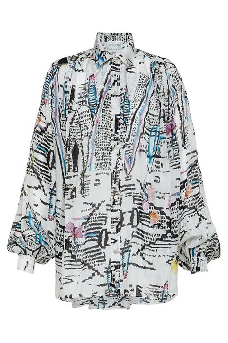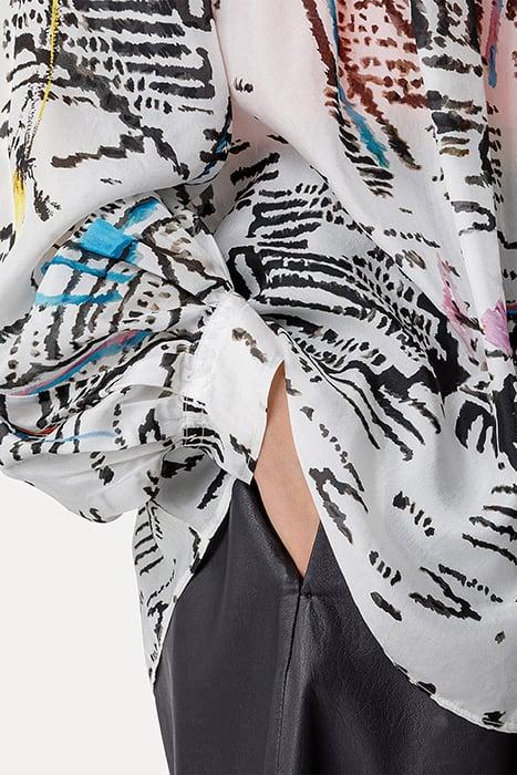"GOOD VIBES" PRINT CO/SE SILK BOHEMIAN SHIRT AVORIO