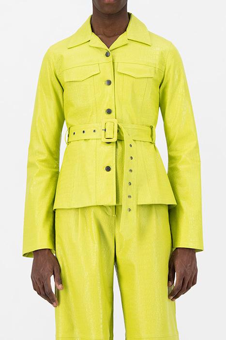 This boxy jacket comes with elongated flared sleeves for a modern fit. Constructed to look like a leather jacket, this piece is crafted from polyurethane fabric that's been embossed to look like crocodile print, providing a cruelty-free and sustainable alternative to exotic leathers. The waist can be nipped in to create a more feminine silhouette using the adjustable waistbelt.