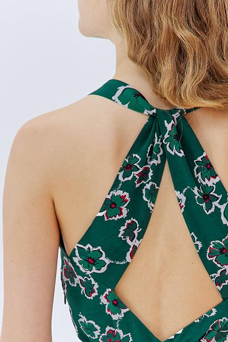 Reveal Just Enough. That’S What This Jumpsuit Is All About. With A Flowing Fit, It Stands Out For Its Backless Shape And Xl Floral Print On A Green Background.