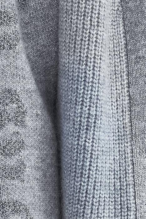 GREY KNIT BELTED CARDIGAN WITH SLOGANS ON SLEEVES GREY
