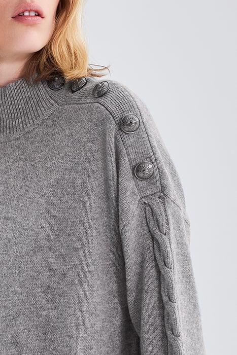 GREY KNIT DRESS, ENGRAVED BUTTONS ON SHOULDER