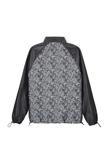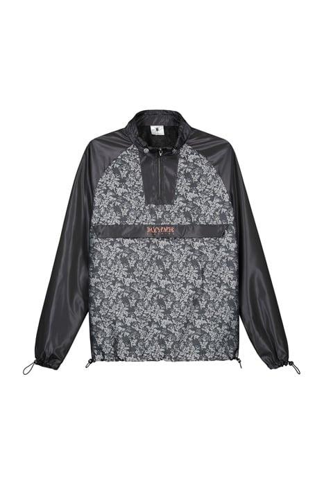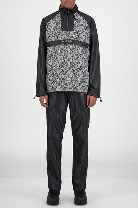 On this pullover anorak, a metallic fabric collar and sleeves are contrasted against custom leaf print jacquard fabric with a raglan construction. A technical jacket that's ideal worn over a tee as a mildly wind and water-resistant shell, it features an adjustable elastic cord funnel neck, cuffs and hem to keep the elements out, while a quarter-zip opening can be used for increased ventilation. Meanwhile, a solitary chest pocket gives ample storage. Pair with matching Grey Leaves Hezip Pants.