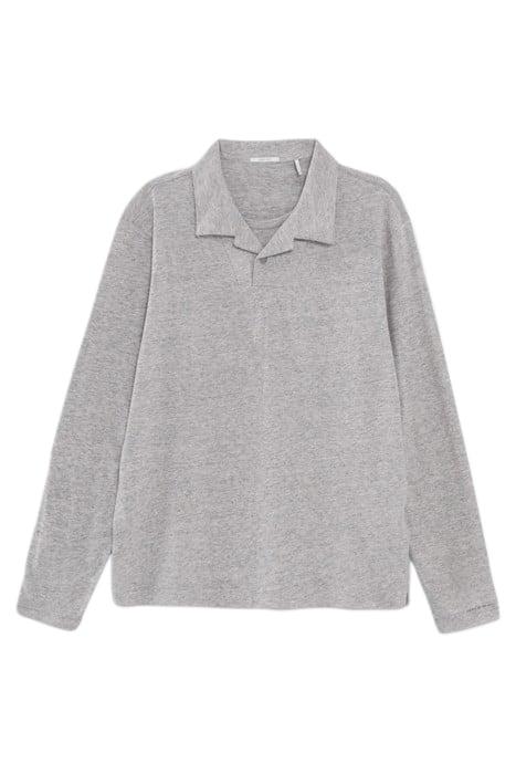 The Long-Sleeve Polo Shirt Stands Out. Because It Has A Medium Grey Marl Colour, Central Seaming And Trompe-L'Oeil Round Collar.