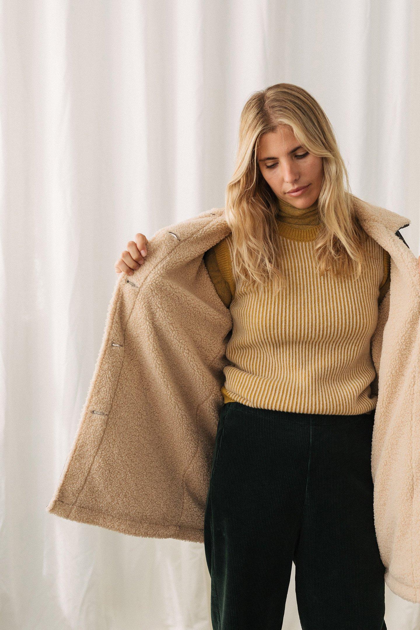 Bi-Colour Ribs Combine With A Sleeveless Design To Create The Harbour, A Knit Whose Hipster Chic Style And Block Colour Edges Are Hard To Resist. Free Your Arms This Autumn/Winter!