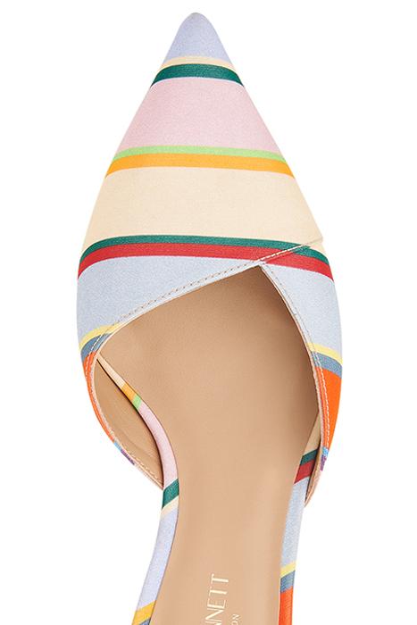 A chic slip-on shoe, our Harriet mules are a playful style in our Royal Ascot x L.K.B collection. Crafted in Spain from multi-coloured striped fabric matching to pieces in our clothing collection, they have a pointed toe, a V-shape topline and a low slim block heel. Elegant and easy enough for everyday, wear them with the matching Holzer dress or to liven up simple sun dresses or tailored trousers. Please note: Each pair is unique thanks to the fabric used which means that colours may vary but will be matched in a pair.
