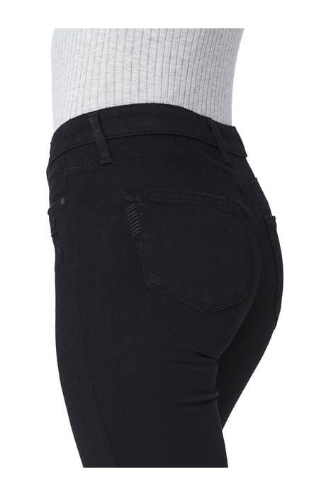 This high-rise skinny is the epitome of cool with a destructed black wash, tonal black hardware, a slit outseam and a raw hem. Cut from our famed TRANSCEND denim, this style is luxuriously soft and incredibly comfortable with plenty of stretch and recovery to give it a flawless fit from morning to moonlight.