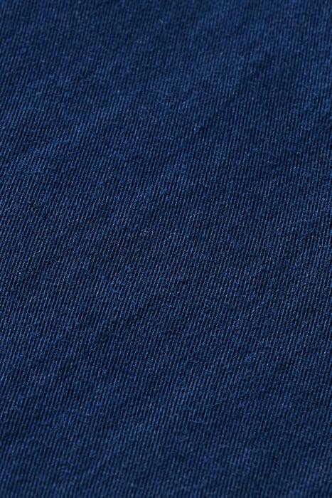 The washed indigo hue adds a laid-back appeal, while the intricate beading details on the front pockets elevate the overall look, making it a unique and eye-catching ensemble. The relaxed fit and adjustable waist tie ensure a comfortable and flattering silhouette for all body types.