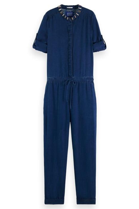 Introducing the Indigo Tencel Denim Washed All-in-One with Beading Details by Scotch & Soda, a versatile and stylish piece perfect for any fashion-forward individual. Crafted from high-quality Tencel denim, this all-in-one exudes a relaxed yet chic vibe.