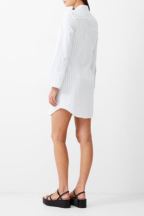 ISABELLE STRIPED POPLING DRESS LINEN WHITE/CASHMERE