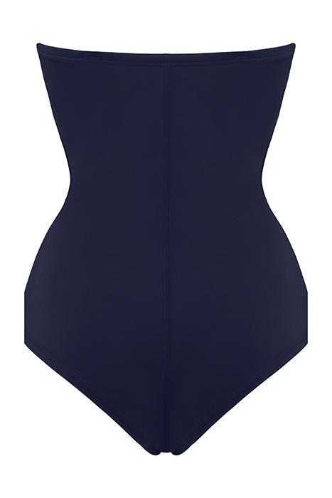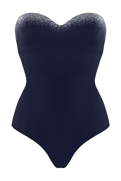 Bathing Suit - Strapless - Wired Padded - 35825-Midnight Blue And Silver-