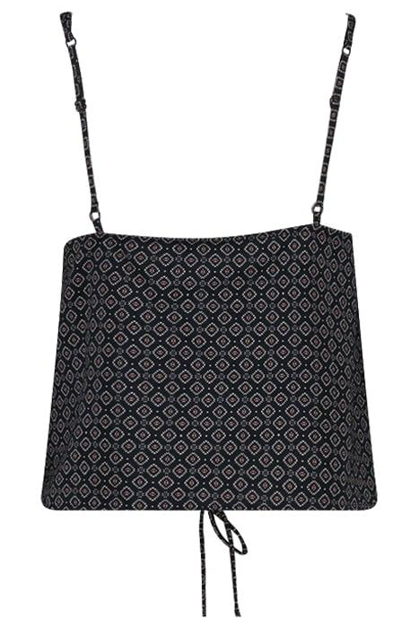America Today Women'S Top. The Ivara Is An All-Over Print Top With A V-Neckline. The Top Features Adjustable Straps And A Gathering Detail With Cords On The Front.
