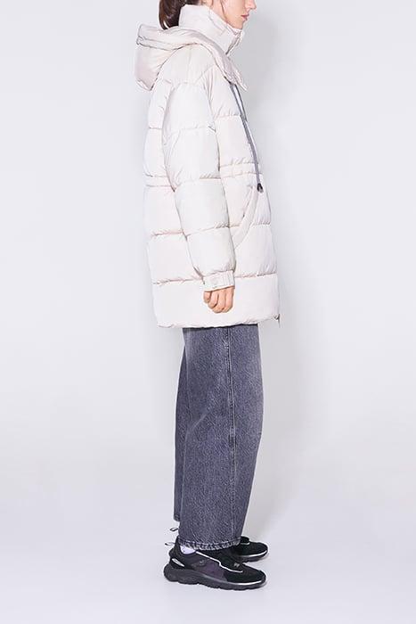 Puffer Jacket With Super Lightweight Filling In Ivory. Oversize Model Fitted At The Waist With Long Sleeve And Hood. Front Zip Fastener And Side Openings With Zip.
