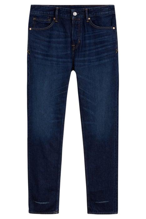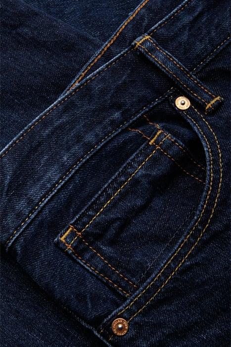 Long Rise, Tapered Leg, Non-Stretch.