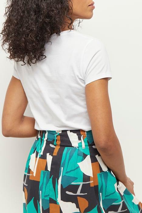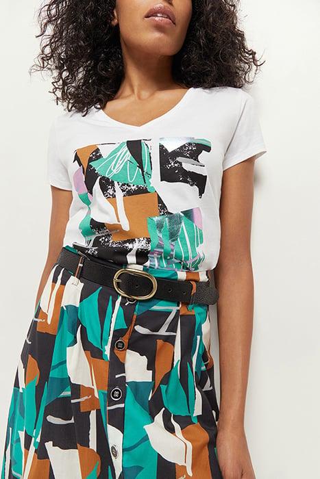 JUNE - LONG GREEN GRASS SKIRT WITH ARTY ABSTRACTION PRINT