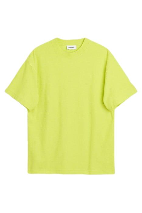 Kai Is A Relaxed-Cut T-Shirt. 1X1 Rib At The Neck. The Garment Is A Twin Needle Stitched At The Armhole, Neck, Bottom, And Sleeve Hem. Embroidered Soulland Patch At Left Sleeve. Made In Boucle Jersey