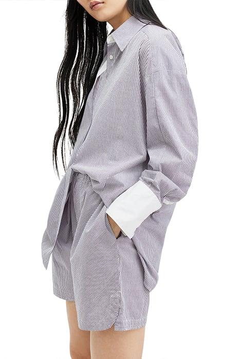 Karina Stripe Shirt Blue/White. Blending classic craftsmanship with modern textures, the Button-Down Shirt in Purple offers an elevated take on casual dressing. Add it to your collection and embrace a new era of modern dressing.