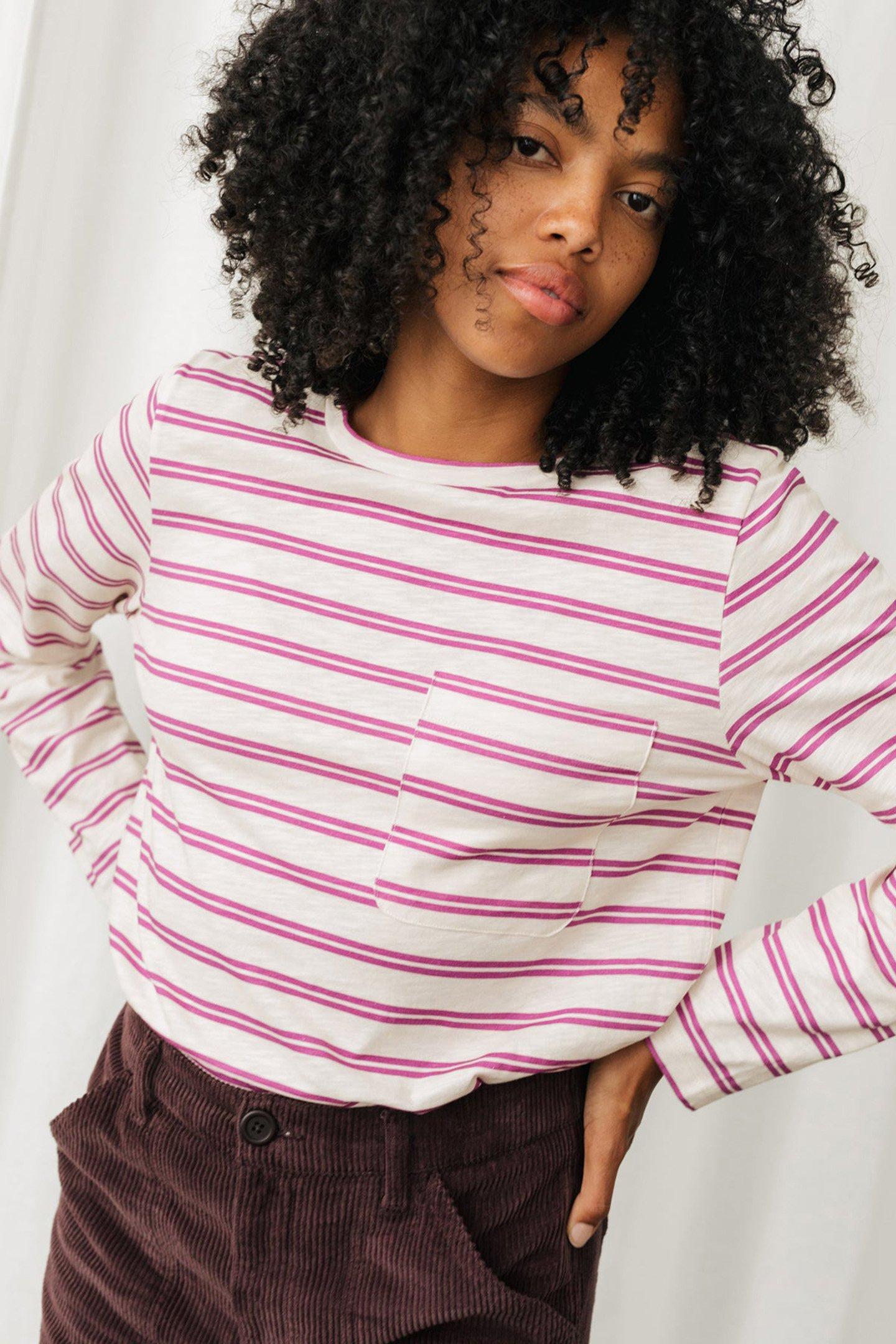 Soft Jersey Slub Fabric And Yarn Dyed Stripes Team Up On The Kilkeel Ethical Top. Its Long Sleeves Are Joined By A Lone Breast Pocket.