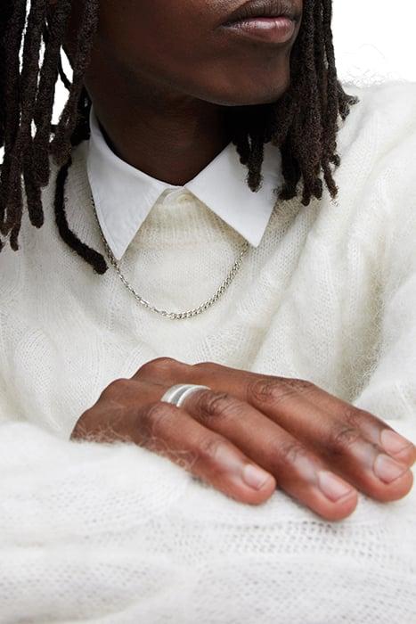 Kosmic Crew Ecru. Perfect for layering or standing out on its own, this White Sweater is the definition of understated luxury. Whether dressed up or down, this Sweater promises to be a go-to staple season after season.