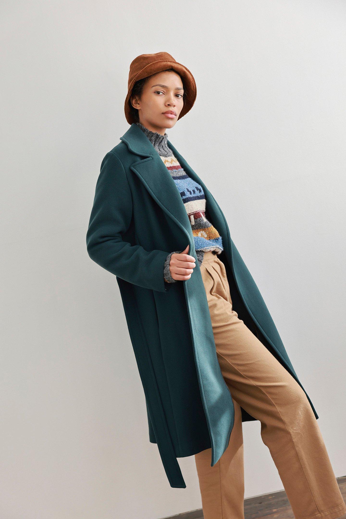 Coming In A Sumptuous Wool Blend, The Kuata Boasts A Matching Fabric Belt, Free-Flowing Lines, And An Accentuated Lapel Design. It Boasts Hidden Side Pockets And A Slit At The Rear Hem.