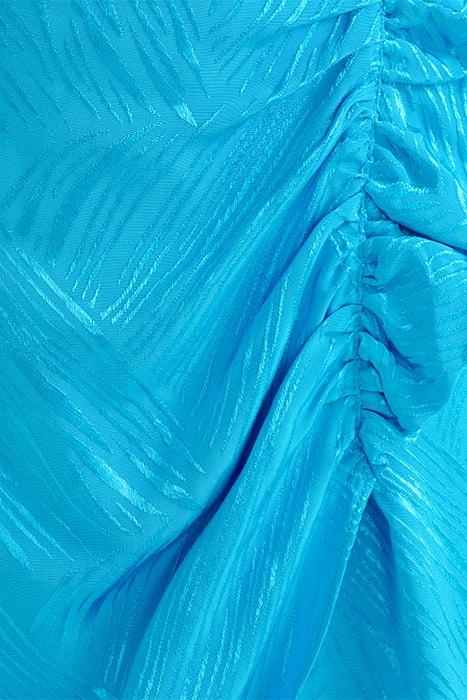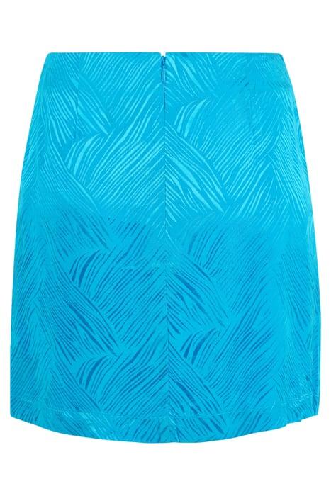 Spice Up Your Wardrobe! The Jacquard Skirt Has A High Waist, A Mini Length, A Zipper And A Fitted Model. The Item Is Characterized By The Bright Blue Color With A Jacquard Print Woven Into The Fabric. The Jacquard Print Has A Leaf Print In A Blue Color. A Nice Detail Is The Pleat At The Front With A Subtle Ruffle. It Is Made Of 100% Viscose, Making It Strong In Quality And Colourfast. Complete The Look With A Feather T-Shirt, An Oversized Waistcoat And Loafers For A Sophisticated Look. The Model Has A Height Of 179 Cm And Wears Size S. The Item Has A Total Length Of 43.5 Cm In Size S