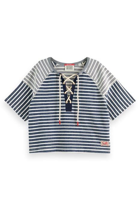 LACE UP BOXY SWEATSHIRT ECRU NAVY STRIPE