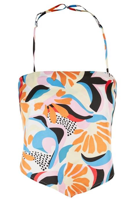 LADIES CROPPED AOP SATIN TRIANGLE TOP MAGICMANGOABSTRACT