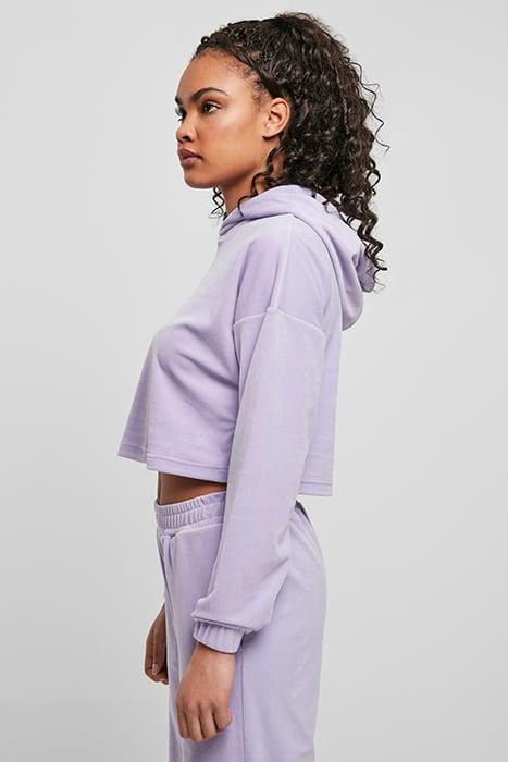 LADIES CROPPED VELVET OVERSIZED HOODY LAVENDER