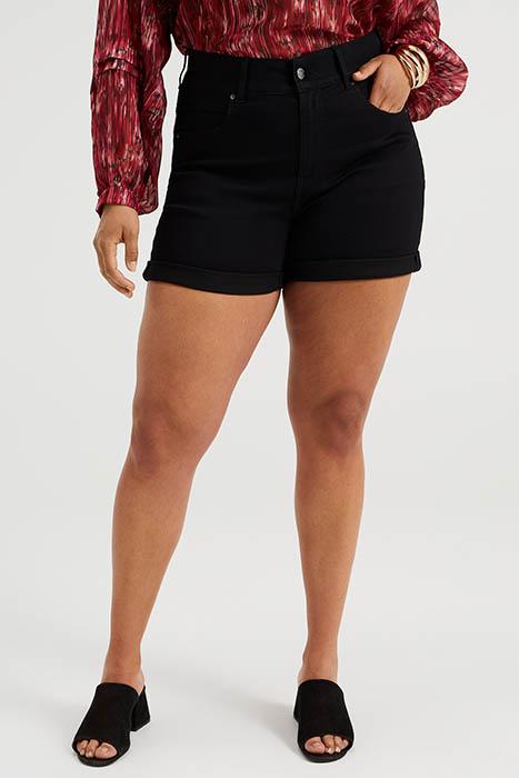 LADIES HIGH RISE DENIM SHORT WITH STRETCH - CURVE BLACK