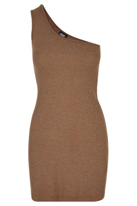 LADIES RIB ONE SHOULDER DRESS DARKKHAKI