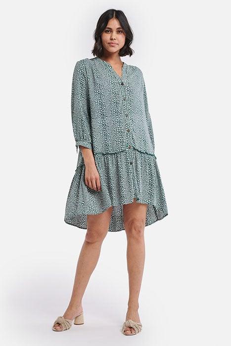 LADIES TUVALU DROP WAIST DRESS HUNTER GREEN