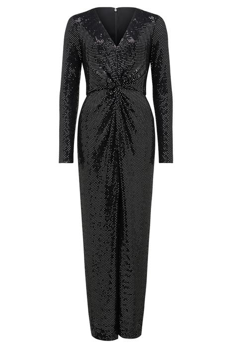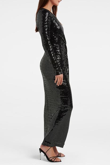 LARISSA METALLIC TWIST MIDI DRESS BLACK AND SILVER SPOT