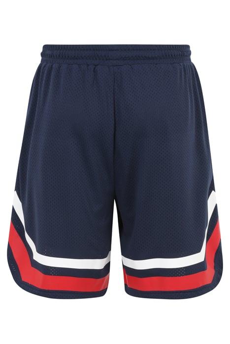 Baseball Short In A Open Mesh Quality. Inspired By Basketball Shorts, With Contrasting Blocks Across Legs. Branded With An Arched Fila Linear Logo.