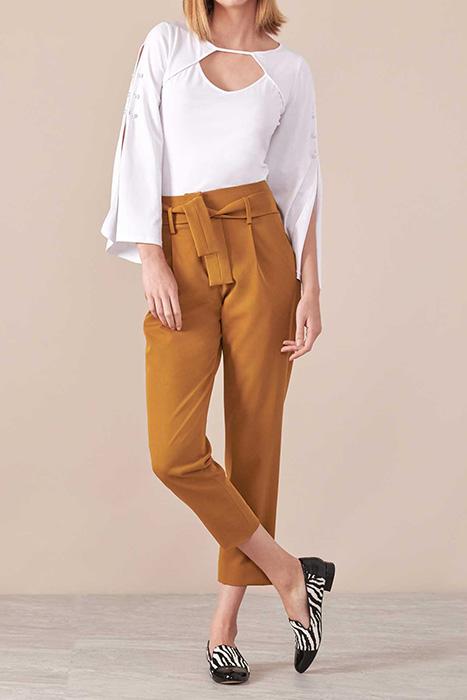 The LEXIE are straight leg cropped pants in this season's color, Mustard. These pants are enhanced with a single pleat on each side and have a removable self-tie belt to accentuate the high-rise, paper bag waist. The LEXIE pants feature open pockets on the sides and a center-front zipper with a hook and eye for closure.