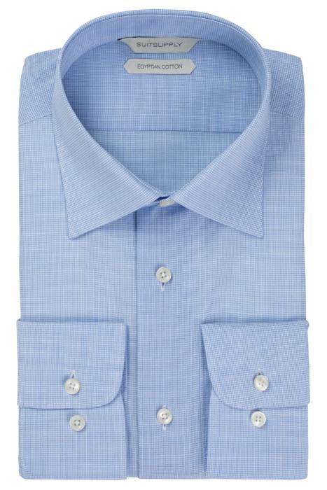 The Perfect Finish To Any Refined Ensemble, This Structured Light Blue Shirt Features A Single Cuff, And Classic Collar, And Is Tailored To Our Extra Slim Fit. Cut From Soft Egyptian Cotton By Albini, It'S Made In A Pied De Poule Weave For A Touch Of Pattern.