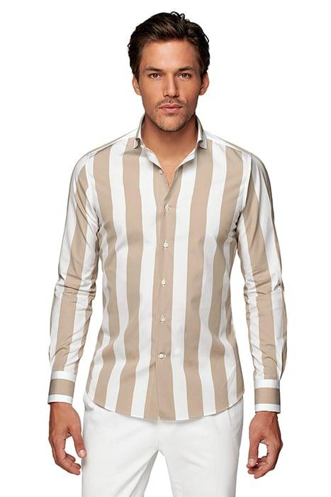 Elevate your wardrobe with this Light Brown Striped Extra Slim Fit Shirt from Suitsupply. Crafted for a sleek silhouette, it features a stylish striped pattern that adds a touch of sophistication to any outfit. Perfect for both business meetings and casual outings, this shirt combines comfort and style seamlessly. Pair it with tailored trousers or your favorite jeans for a sharp look that’s sure to impress!