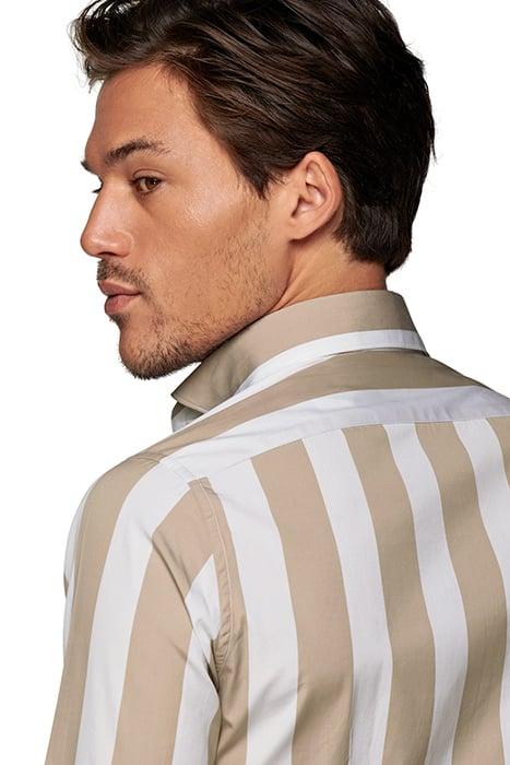 LIGHT BROWN STRIPED EXTRA SLIM FIT SHIRT