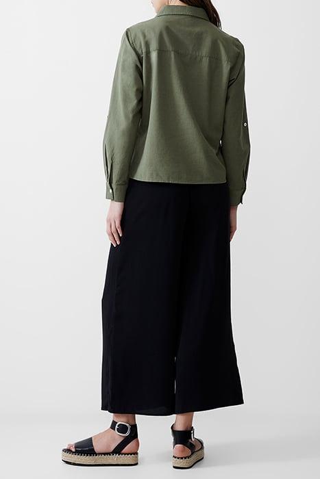 LINEN BLEND VEE PLACKET TOP KHAKI