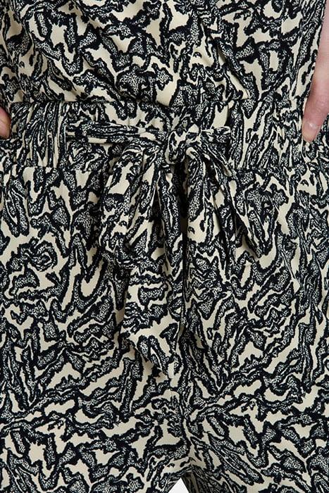 Spring favourite! De jumpsuit heeft korte mouwen, een elastische tailleband en rechte pijpen. De jumpsuit wordt gekenmerkt door de all-over print in de kleuren zand en zwart. Combineer het pak met een paar sneakers voor een sophisticated look, óf draag het item met een paar sneakers voor een every-day look! Het model heeft een lengte van 178 cm en draagt maat S. Het artikel heeft een lengte van 39,5 cm tot de tailleband bij een maat S. De pijpen van de jumpsuit hebben een binnenbeenlengte van 80 cm bij maat S