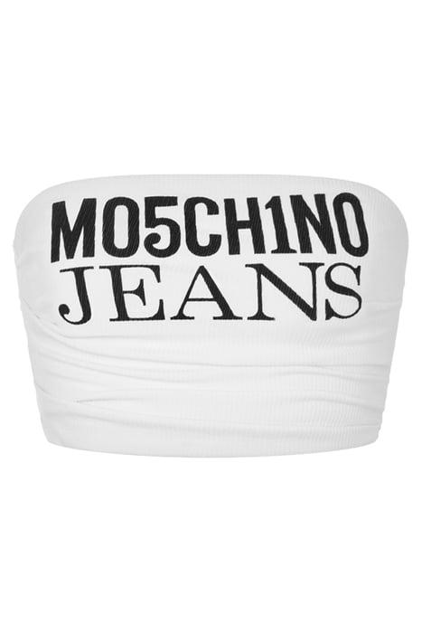 Draped Cotton Crop Top With Ribbed Knit And Contrasting Logo Print.