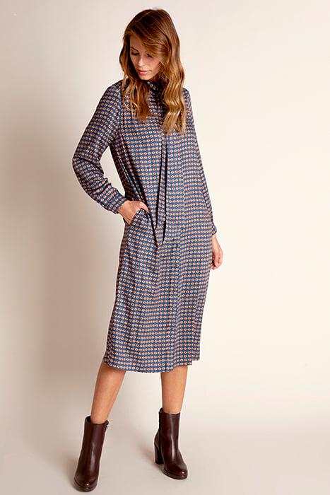 LONG DRESS SCARF NECKLINE BLUE