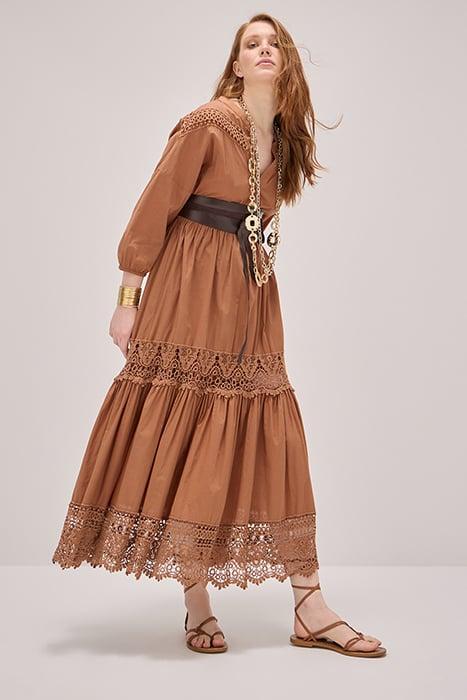 LONG DRESS WITH CROCHET INSERTS NATURAL