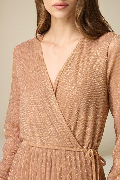 LONG LUREX PLEATED DRESS BEIGE