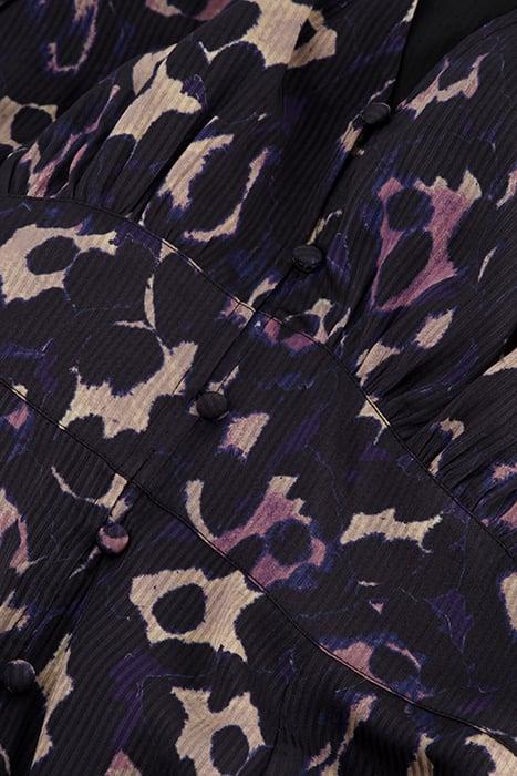 Short Dress With V-Neckline And Invisible Zip Fastening. Lynn Short Indi Dress Has Balloon Sleeves, Button Details Over The Entire Length And Flares Out.