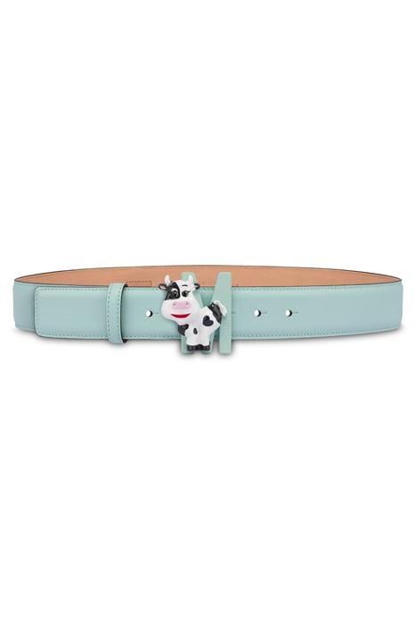 Calfskin Belt With Matt Enamelled M Buckle Decorated With Baby Cow On The Front