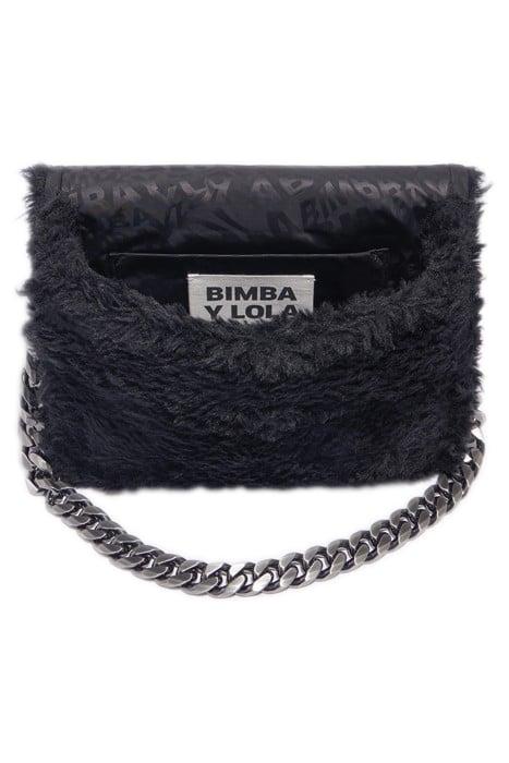 Fur Shoulder Bag In Black. Medium Model With Flap Closure And Chain Strap. Exterior Customized With Lb Logo.